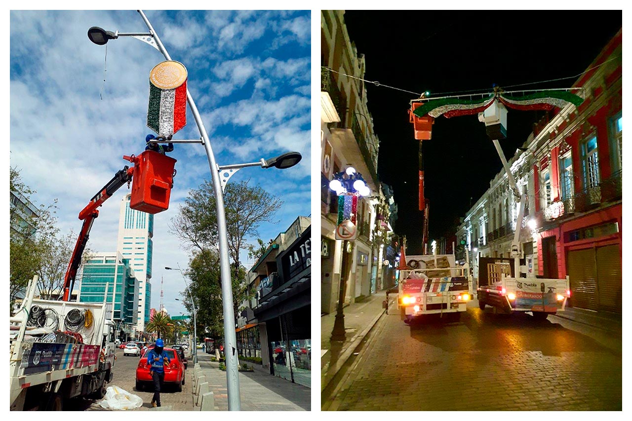 Para acompañar esta fiesta mexicana, la Secretaría de Servicios Públicos instala más de 800 adornos y más de 44 kilómetros de series de luz en diversas calles como la avenida Juárez, Reforma, Juan de Palafox y Mendoza, 16 de Septiembre, calle 5 de Mayo, 6 Oriente y 3 Oriente, también en Palacio Municipal, zócalo, Parque del Carmen, Puente de Ovando y Fuente de los Frailes.