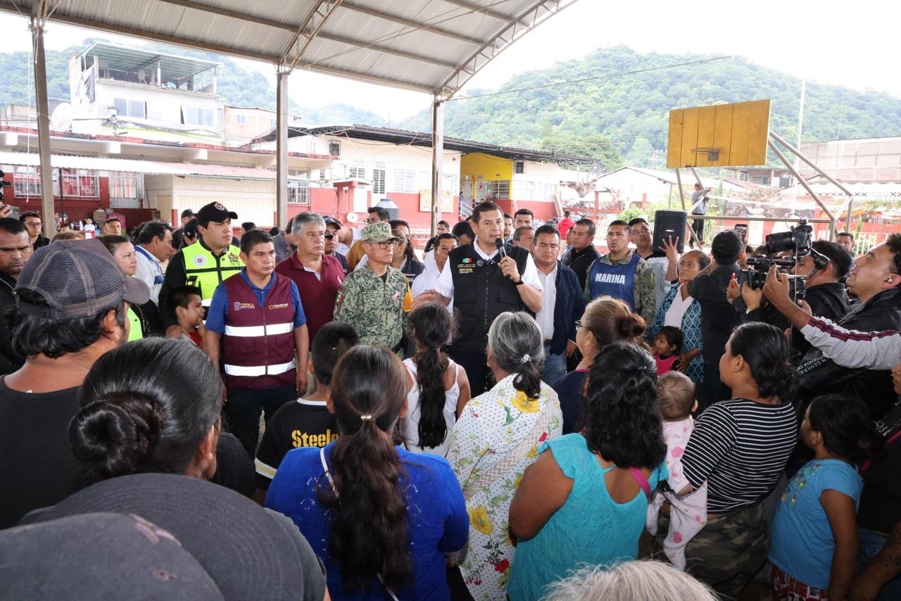 Al visitar el albergue instalado en la Escuela Francisco Murguia, el gobernador afirmó que se brindará empleo temporal a todas las personas damnificadas en la comunidad. “Aquí estamos no vamos a dejarlos hasta que se rehabiliten las viviendas”, afirmó el mandatario, al informar que en el lugar se encuentra el Sistema Estatal DIF para suministrar alimentos, catres y colchonetas.