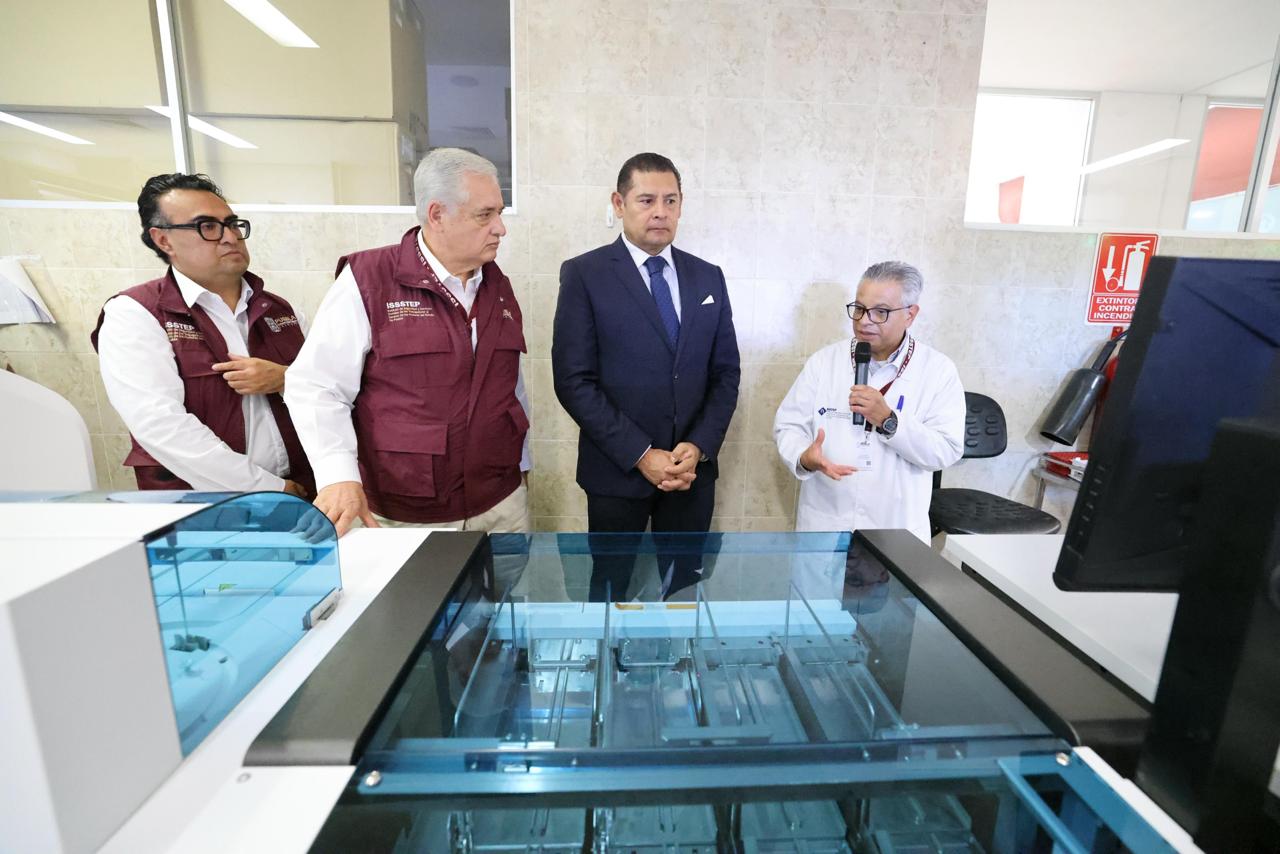 Acompañado por el director general del ISSSTEP, Luis Antonio Godina Herrera; el secretario de Salud, Carlos Alberto Olivier Pacheco; y el secretario general del sindicato, Ángel Vázquez Flores; el gobernador Armenta develó la placa inaugural. Subrayó que fortalecer al ISSSTEP representa una prioridad para su administración, pues garantizar servicios de calidad a las y los trabajadores y jubilados es justicia y humanismo social.