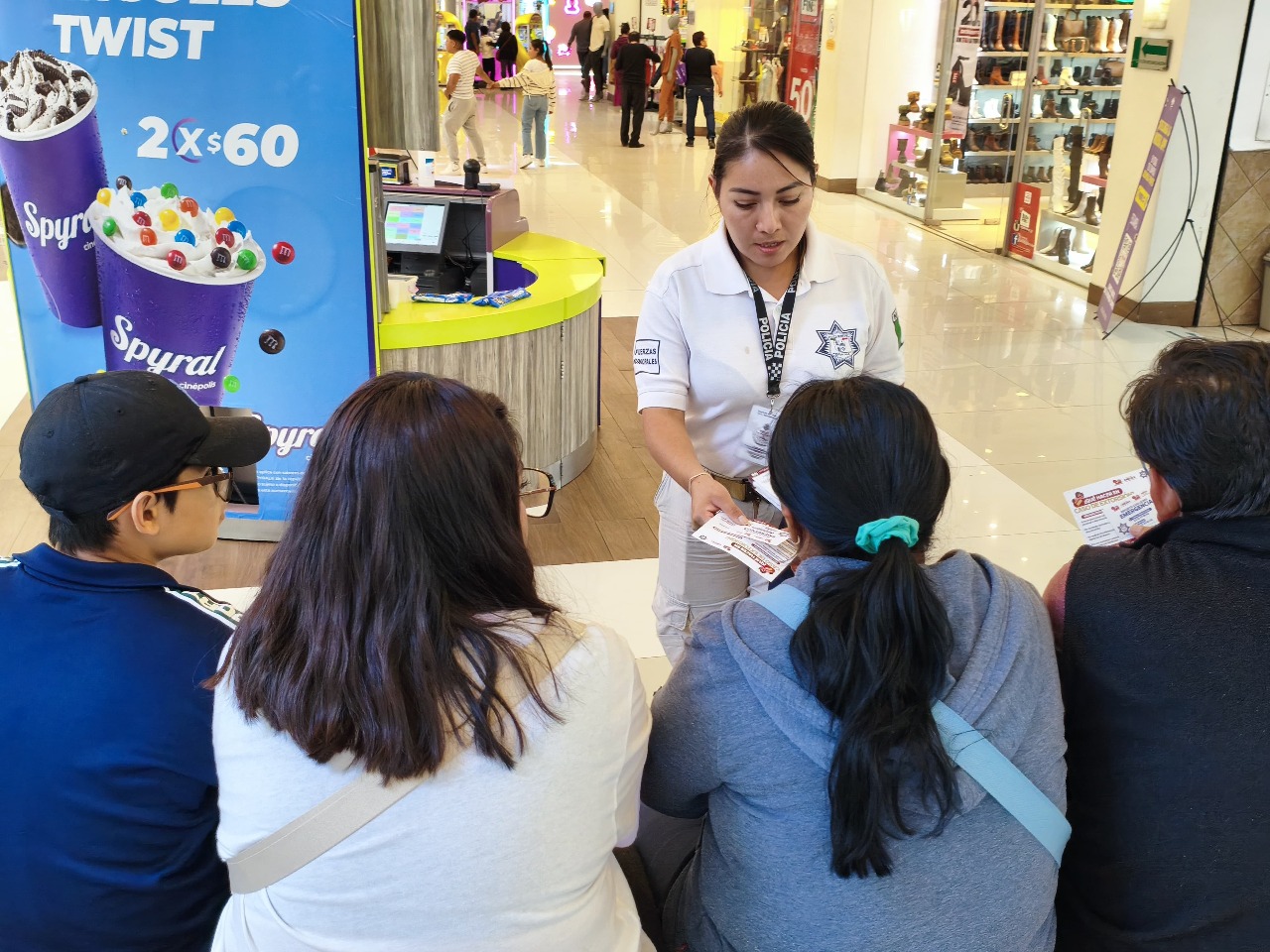 De manera paralela, la Dirección de Prevención del Delito y Atención a Víctimas intensificó acciones de proximidad social, brindando información preventiva y promoviendo el uso responsable de los números de emergencia en la zona centro y plazas comerciales. Asimismo, a través de los 30 Comités de Seguridad con Comerciantes, se reforzó la difusión de recomendaciones de seguridad para prevenir extorsiones y otros delitos, además de promover el servicio gratuito de acompañamiento bancario.