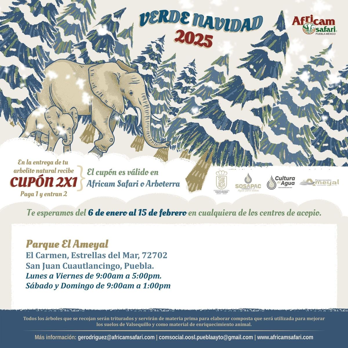Como incentivo a la participación ciudadana, quienes entreguen su árbol navideño recibirán un boleto de entrada 2×1 para Africam Safari o Arboterra, con lo que además se fomenta la educación ambiental y la convivencia familiar.