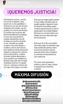 De acuerdo con el texto, las víctimas temen que Ricardo cumpla con sus amenazas, y se convierta en su primo Manuel Forcelledo- quien se encuentra preso por el feminicidio de Karla López Albert-
