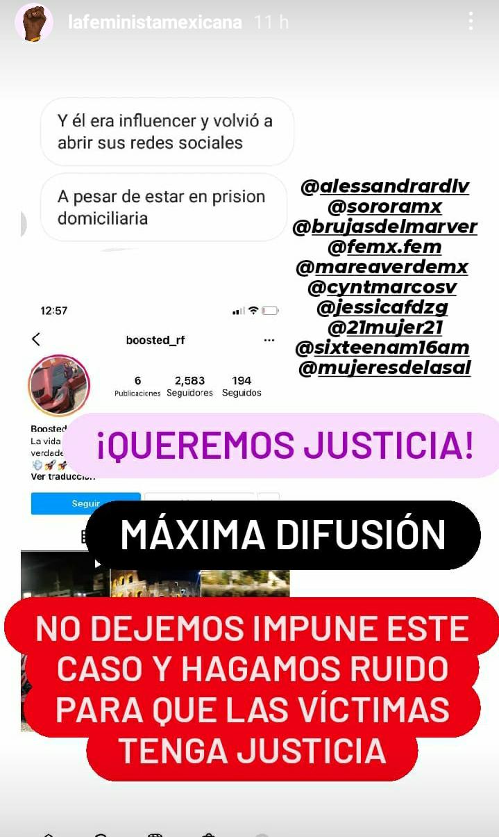 En redes sociales, se dio a conocer que Ricardo activo su cuenta de Instagram con el usuario “boosted_rf”, donde continúa acosando y amenazando de muerte a diversas mujeres que en un tiempo violento.