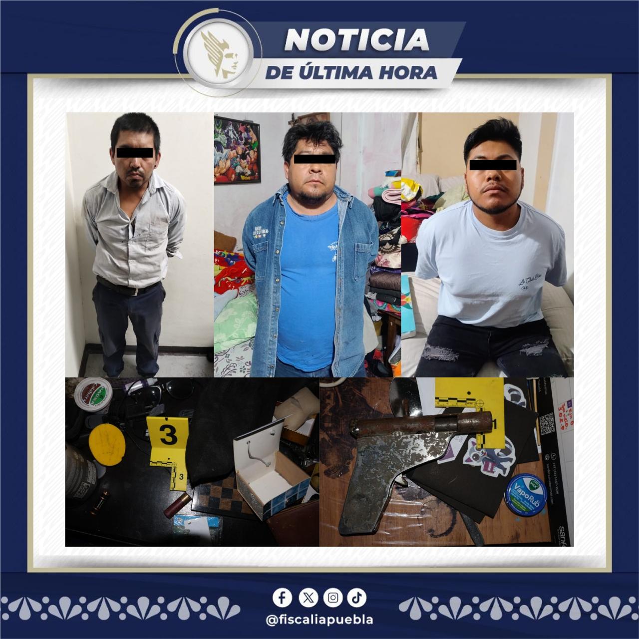 En cumplimiento de un mandato judicial, la Fiscalía General del Estado (FGE) de Puebla, ejecutó una diligencia de cateo en un inmueble ubicado en la colonia San Rafael, del municipio de Tehuacán, Puebla, donde se logró la detención de tres individuos en posesión de sustancia con características propias de la marihuana, así como un arma de fuego de fabricación artesanal.