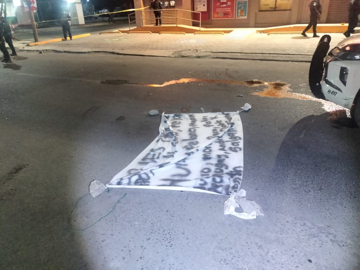 Los agresores dejaron una manta asegurada por la Fiscalía General del Estado (FGE) de Puebla con el siguiente mensaje: “Esto les pasa por apoyar al Gallo, Huixcos, Pelones, Julio, Morch, Paco, Pato, Pechugas, Andrés, Doble K, Tontín”.
