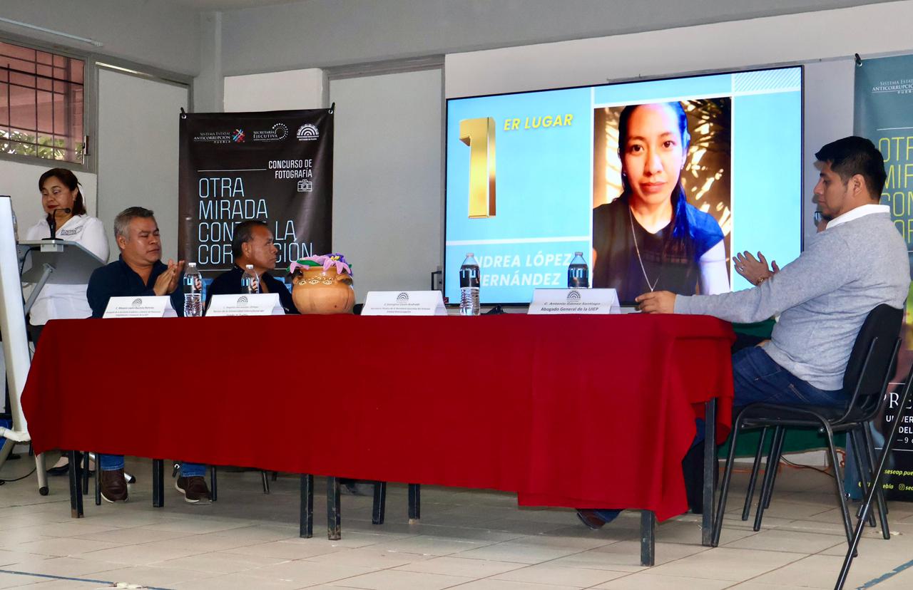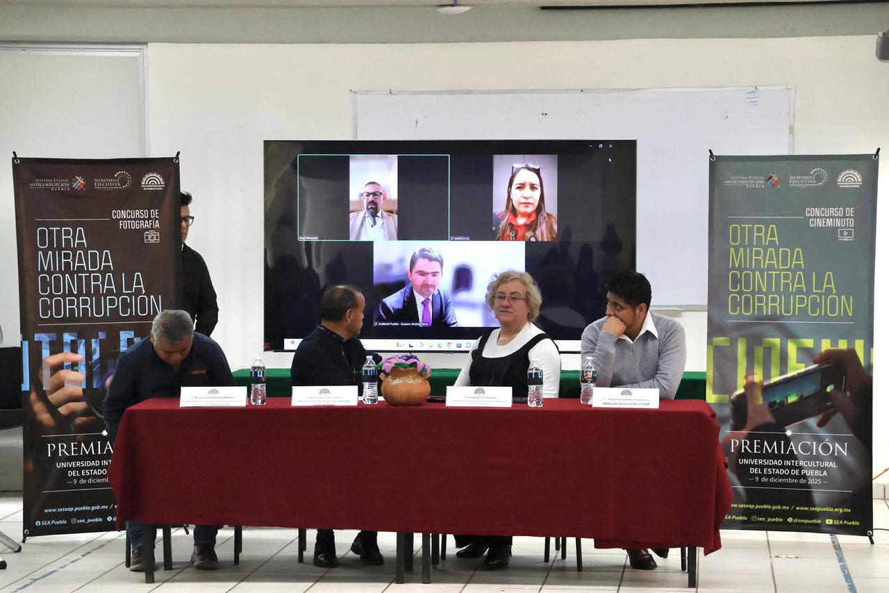 En el marco del “Día Internacional Contra la Corrupción”, la Secretaría Ejecutiva en representación del Sistema Estatal Anticorrupción, llevó a cabo la premiación del concurso “Otra Mirada Contra la Corrupción”, un espacio de expresión donde la comunidad estudiantil de la Universidad Intercultural del Estado de Puebla (UIEP), plasmó a través de fotografías y cineminutos, su percepción de la corrupción y cómo combatirla desde su cosmovisión.