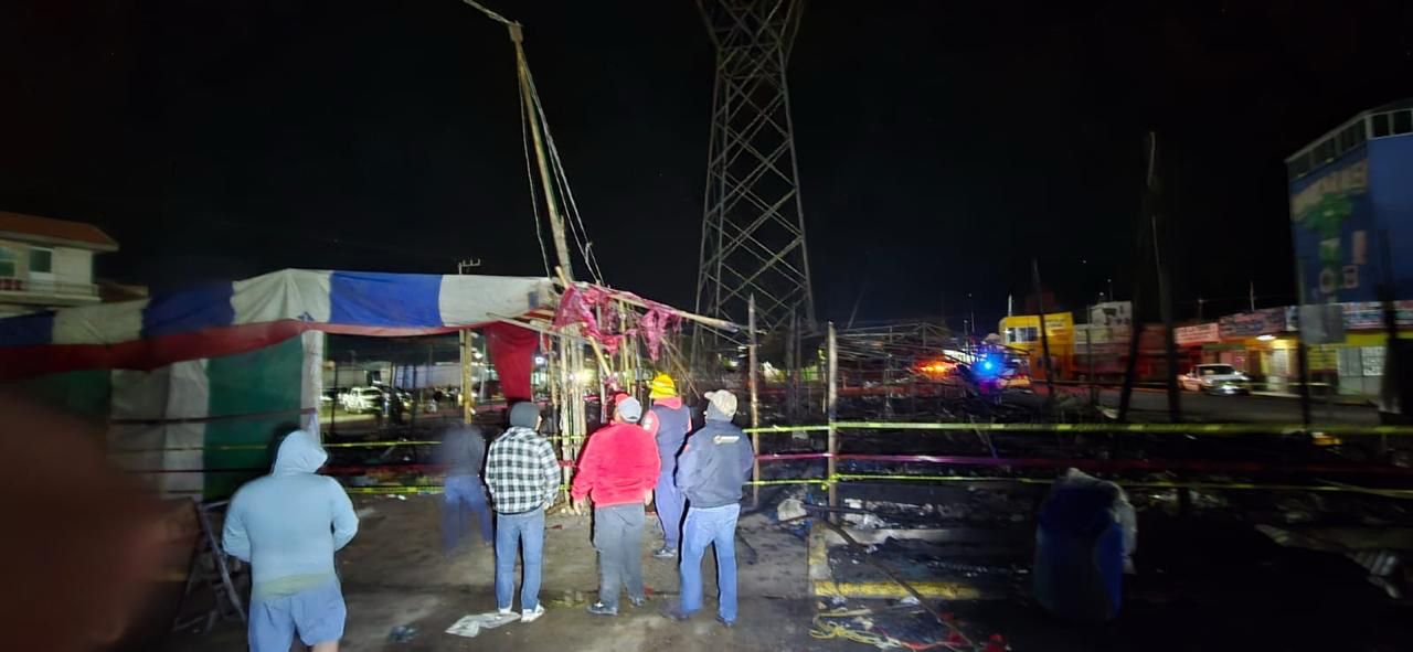 Alrededor de las 3:30 horas concluyeron las actividades operativas, se procedió con el acordonamiento del área debido a los daños estructurales en la torre de energía eléctrica.
